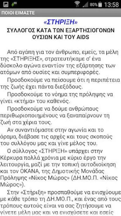 Support: Against Addictions and Aids. Informative application dependencies. Visit for more details the www.stirixi.org
