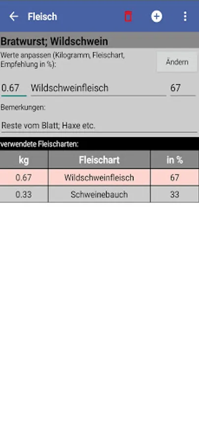 The WurstCalculator app calculates the ingredients for sausage production depending on the raw mass of the meat used.