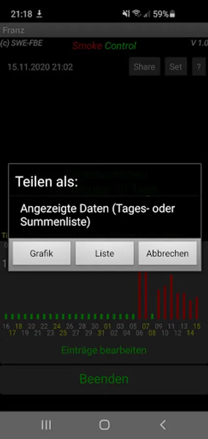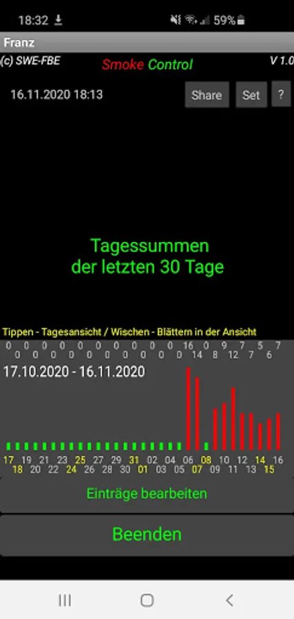 SmokeControl is an easy-to-use app for smoke reduction with immediate updates of the statistics and the graphic display.