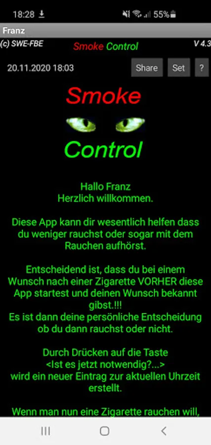 It is important that if you want a cigarette you start the app beforehand and announce your wish and then decide yourself.
