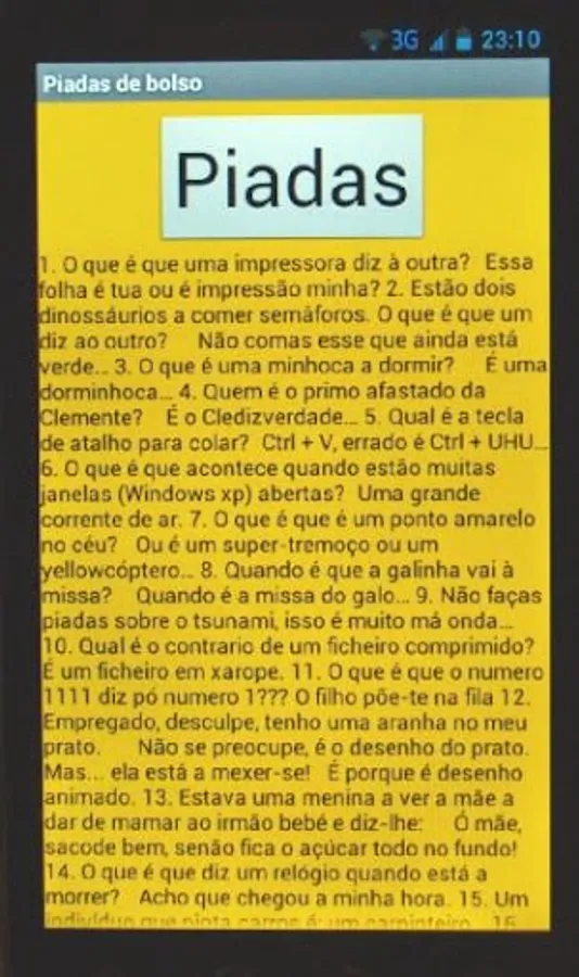 Some of these jokes have been told by my students, others were invented by me. The application is still in development, will be gradually included new jokes and new graphics.