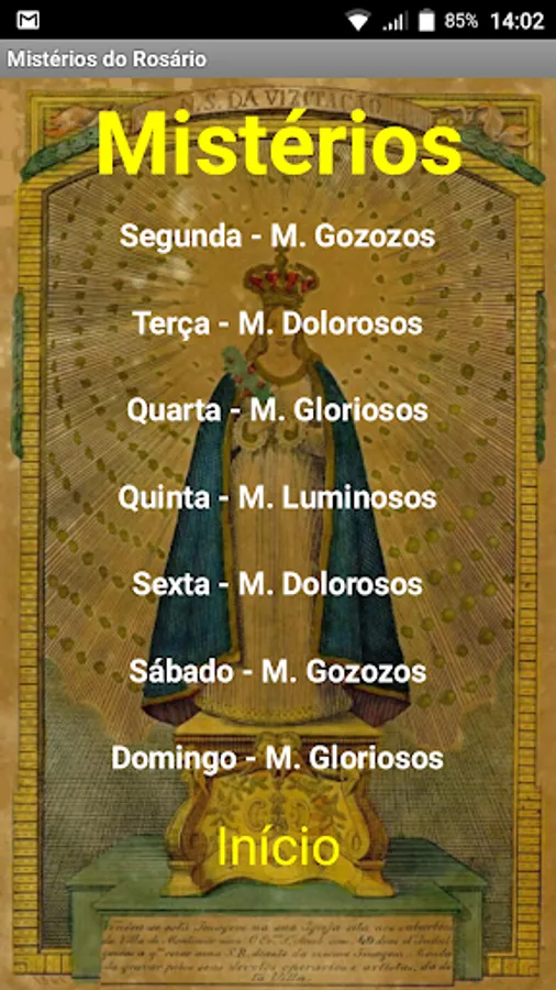 The application displays the Mysteries of the Rosary and aims to help you learn the name of each of the third mystery.