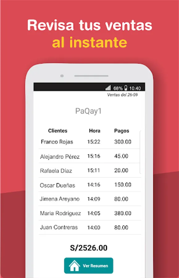 With this APP, you can check the payments received from your customers who pay with PaQay inside or outside Peru and in REAL TIME.