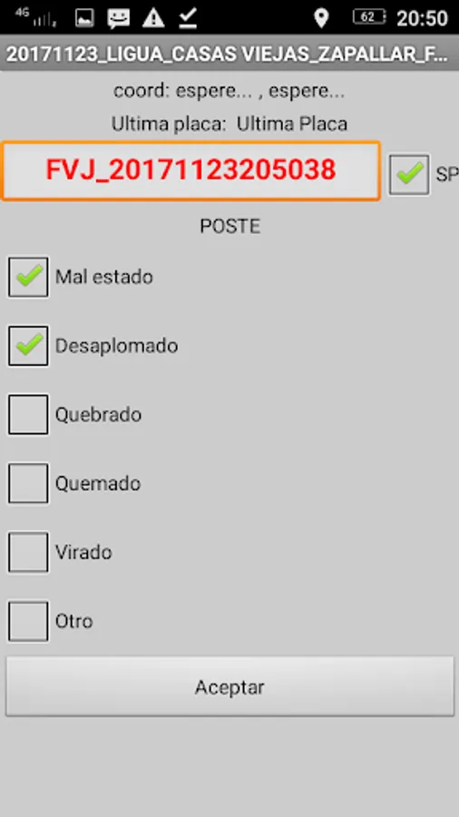 Inspection program for lifting pole to pole for inspection requested by c0n4f3 in establishments Ligua and Ovalle, by company Lufke Services SpA.