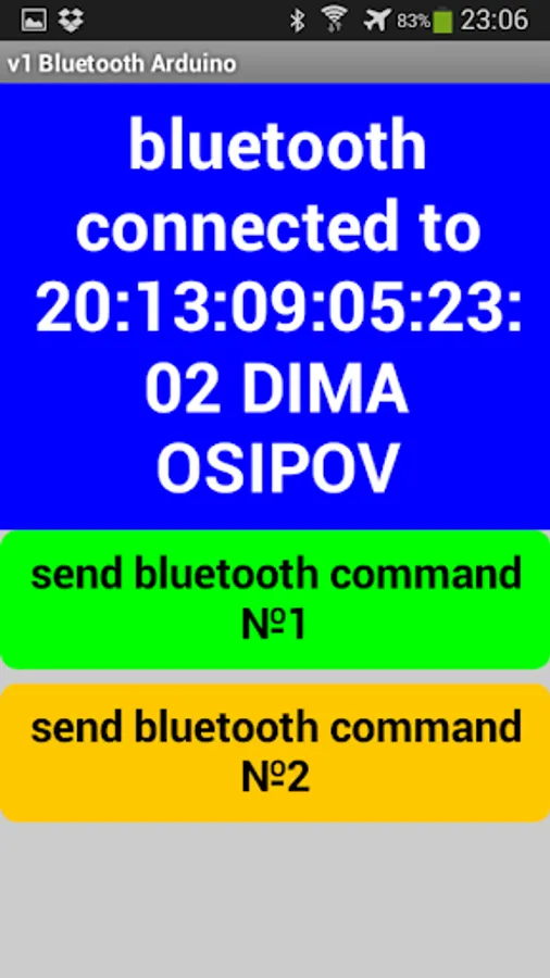 Then click on the button to send the command 1, or press the button to send the command 2.