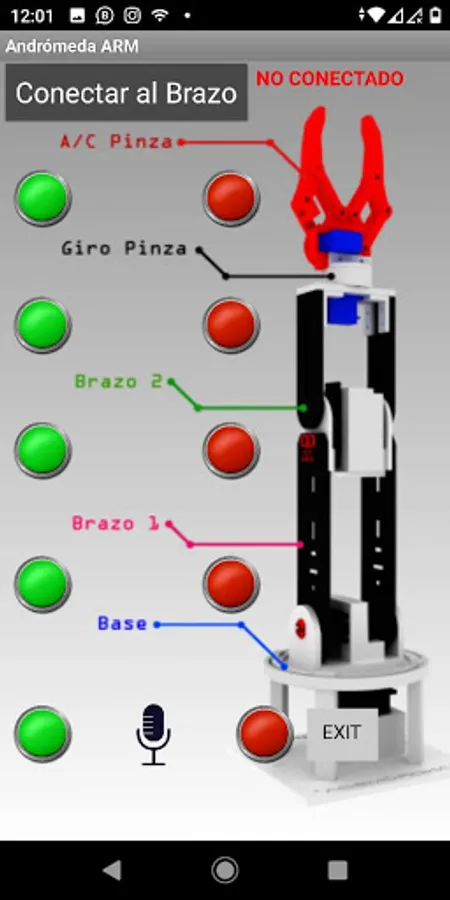 App for Android to be able to control it from the cell phone, apart from this app has voice recognition, so you can command the arm with your voice and it will execute the routines.
