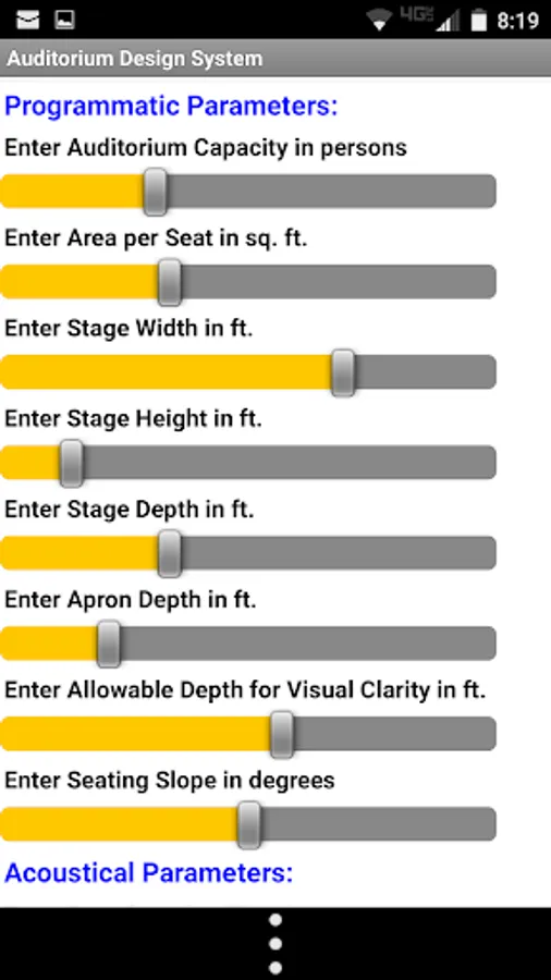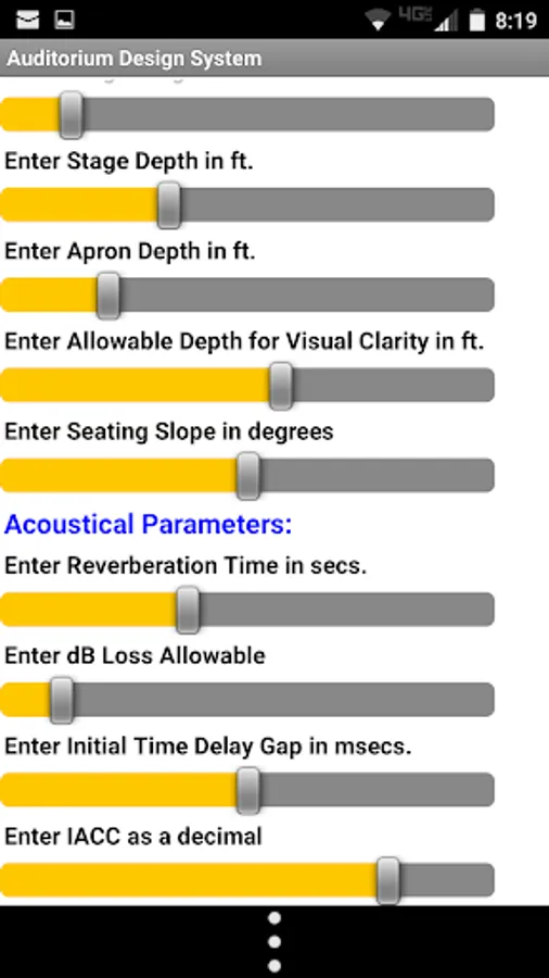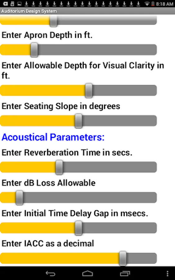 Acoustical Parameters: