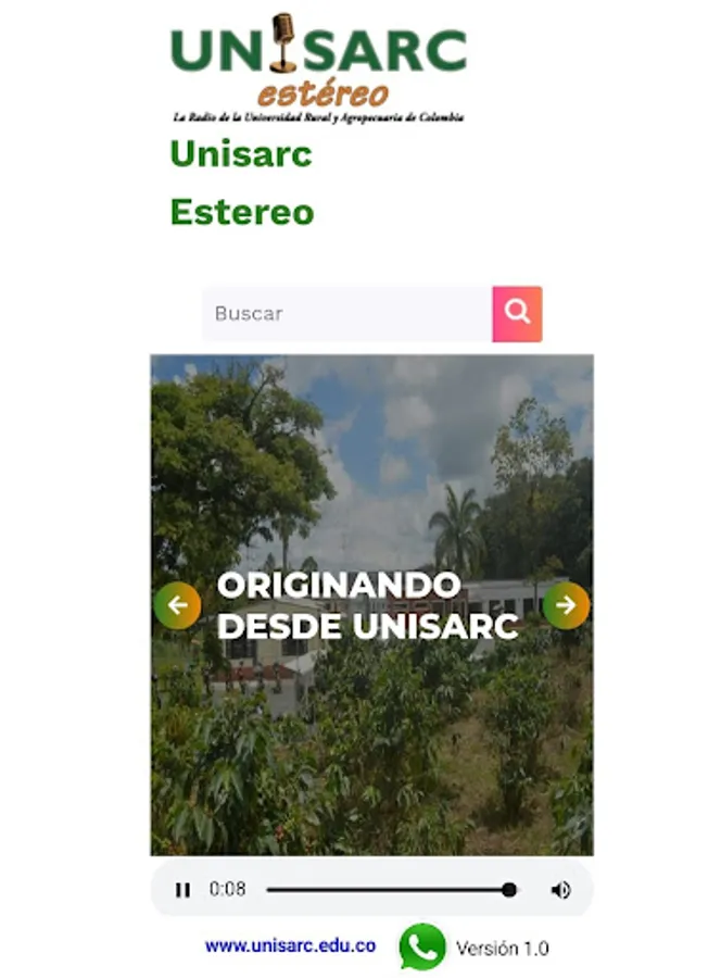 This is the application that allows us to listen to the online station of the University Corporation of Santa Rosa de Cabal, which has the name of UNISARC ESTEREO - The radio of the Rural and Agricultural University of Colombia