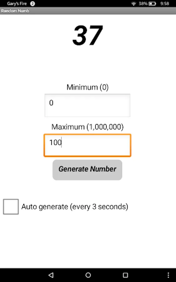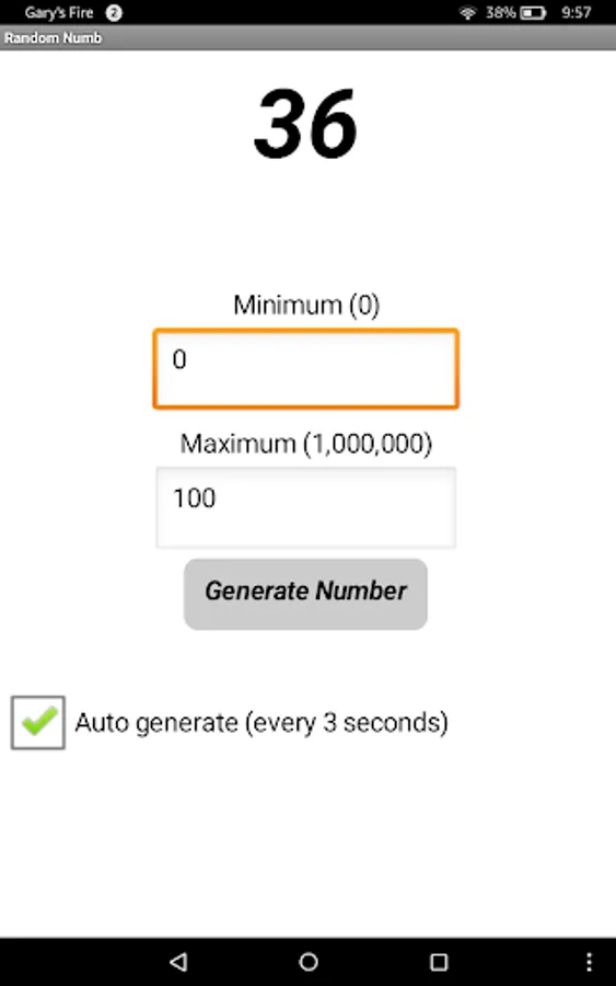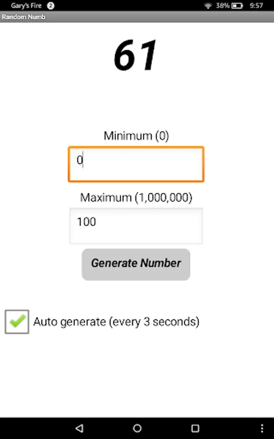 Included is an auto generate feature that creates a new random number every 3 seconds for you. So there's no need to constantly hit the generate button.
