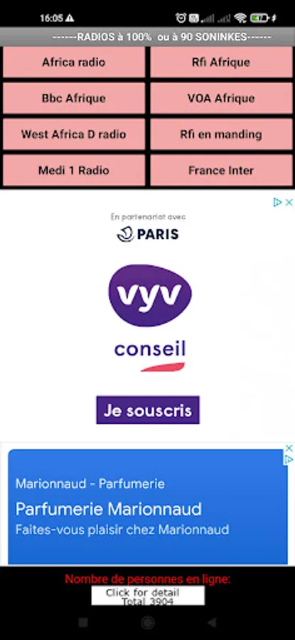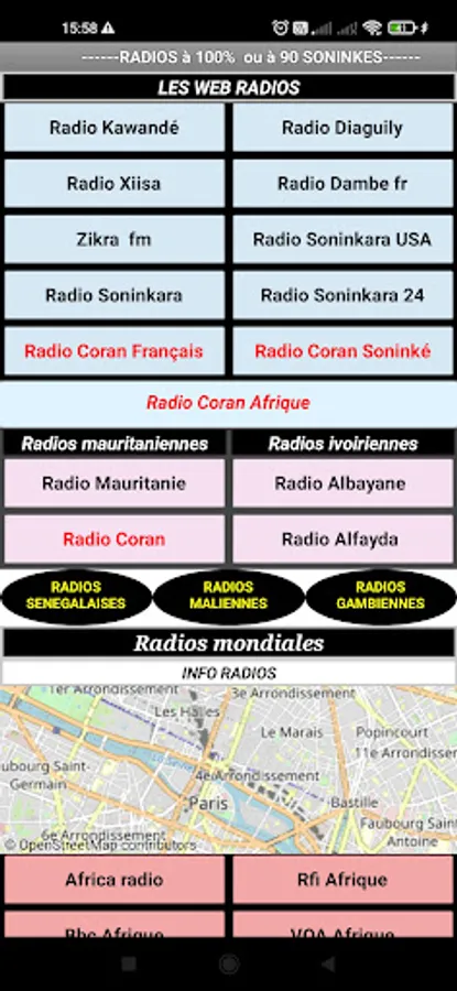 The Jiida fm radio in Dakar has stopped operating over the internet for the moment. As soon as it works, you will have an update of the application.