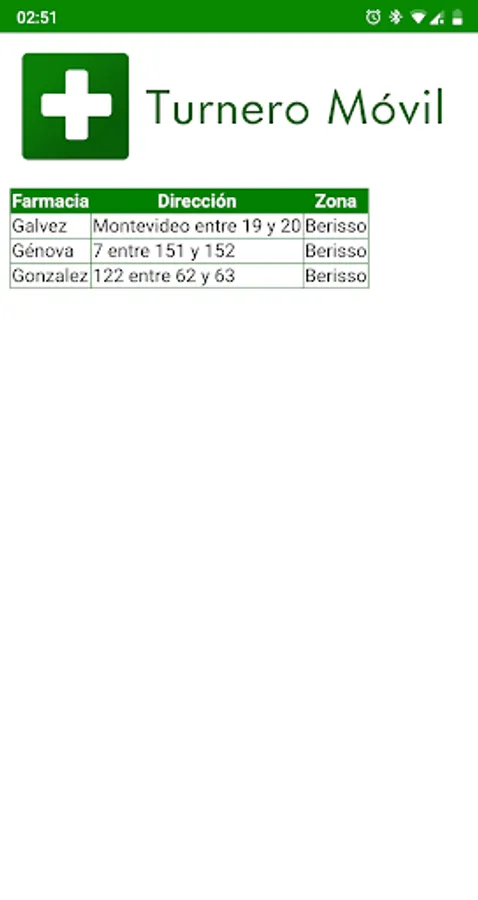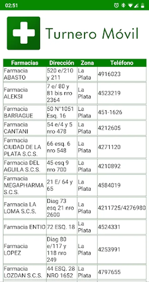 • Displays pharmacies on duty on a map, along with the user's location. (Feature only for queries in the city of La Plata, in the next updates will be added to more locations)