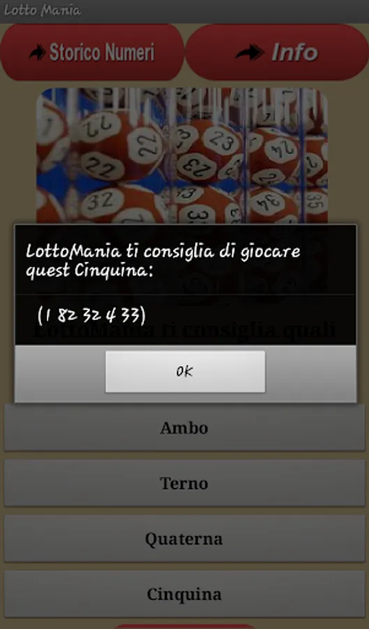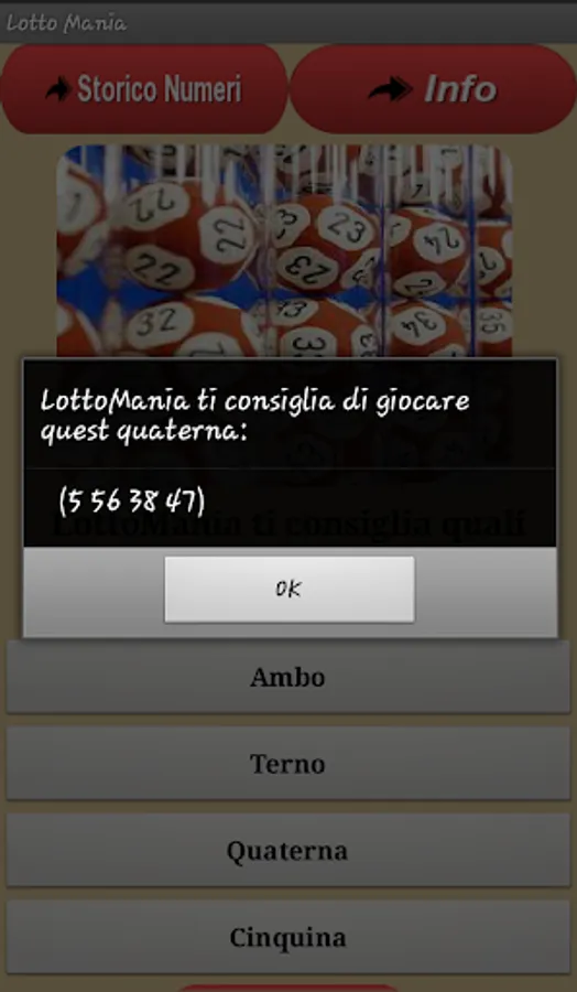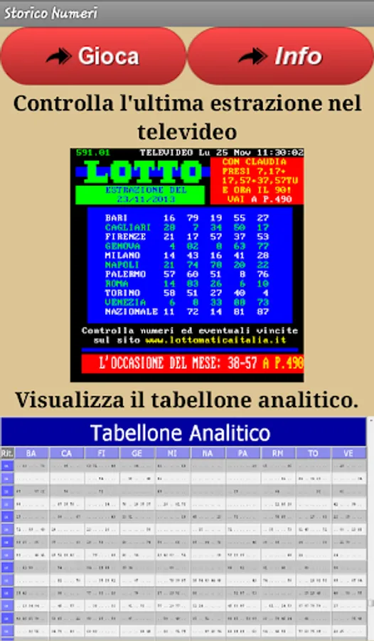 Inside the Application there is the ability to view the last draw of the lot and the history of mining, so you can keep checking the LottoMania method.