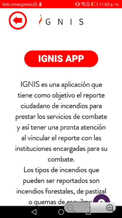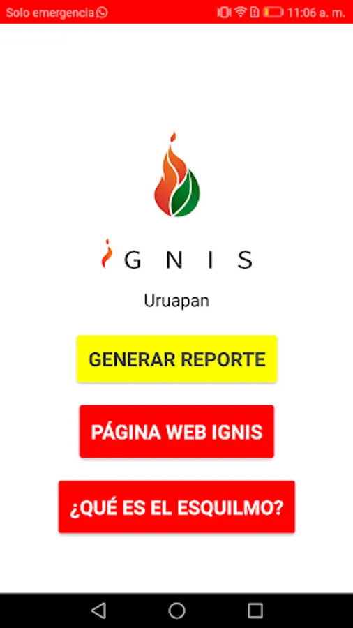 IGNIS is an application that aims to provide services to have prompt attention to fires that are reported by linking the report with the institutions in charge of combating it. The types of fires that can be reported are forest fires, grass fires or slash burns. With the database generated through the use of the IGNIS Citizen Fire Report application, it will be possible to build a fire risk mapping that allows timely management for its attention and in the medium term for its prevention in the municipality of Uruapan .