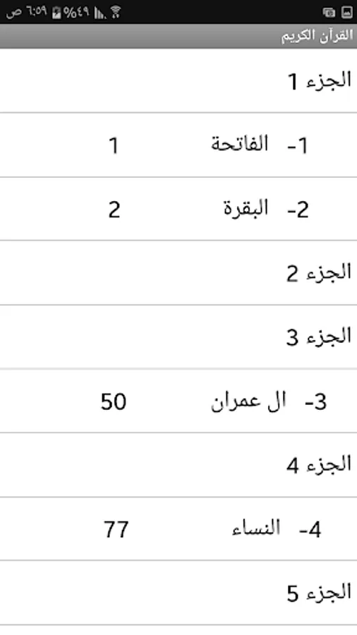 يوجد فهرس السور ، أحزاب ، أجزاء
