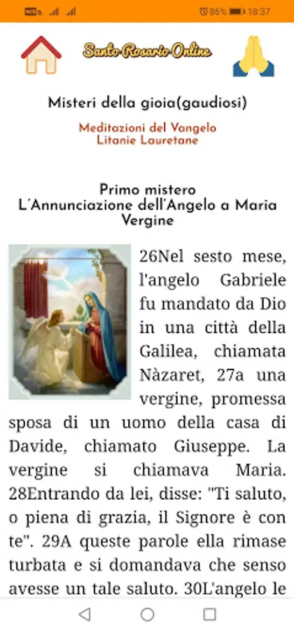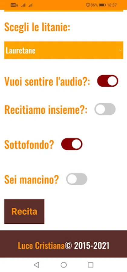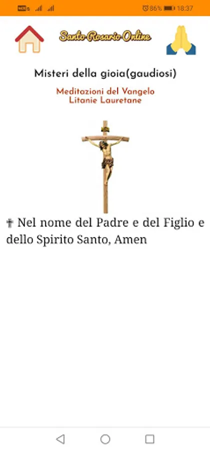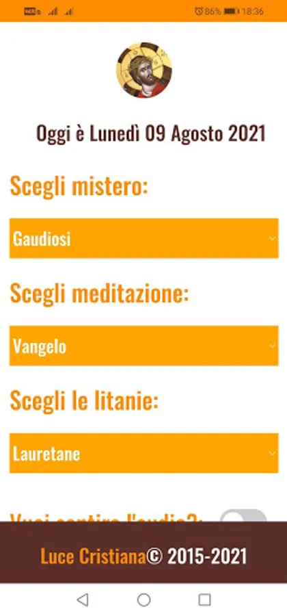 In the home screen you can choose with a few simple clicks which mysteries you want to recite together with the litanies, as well as whether to listen to the audio and the background.