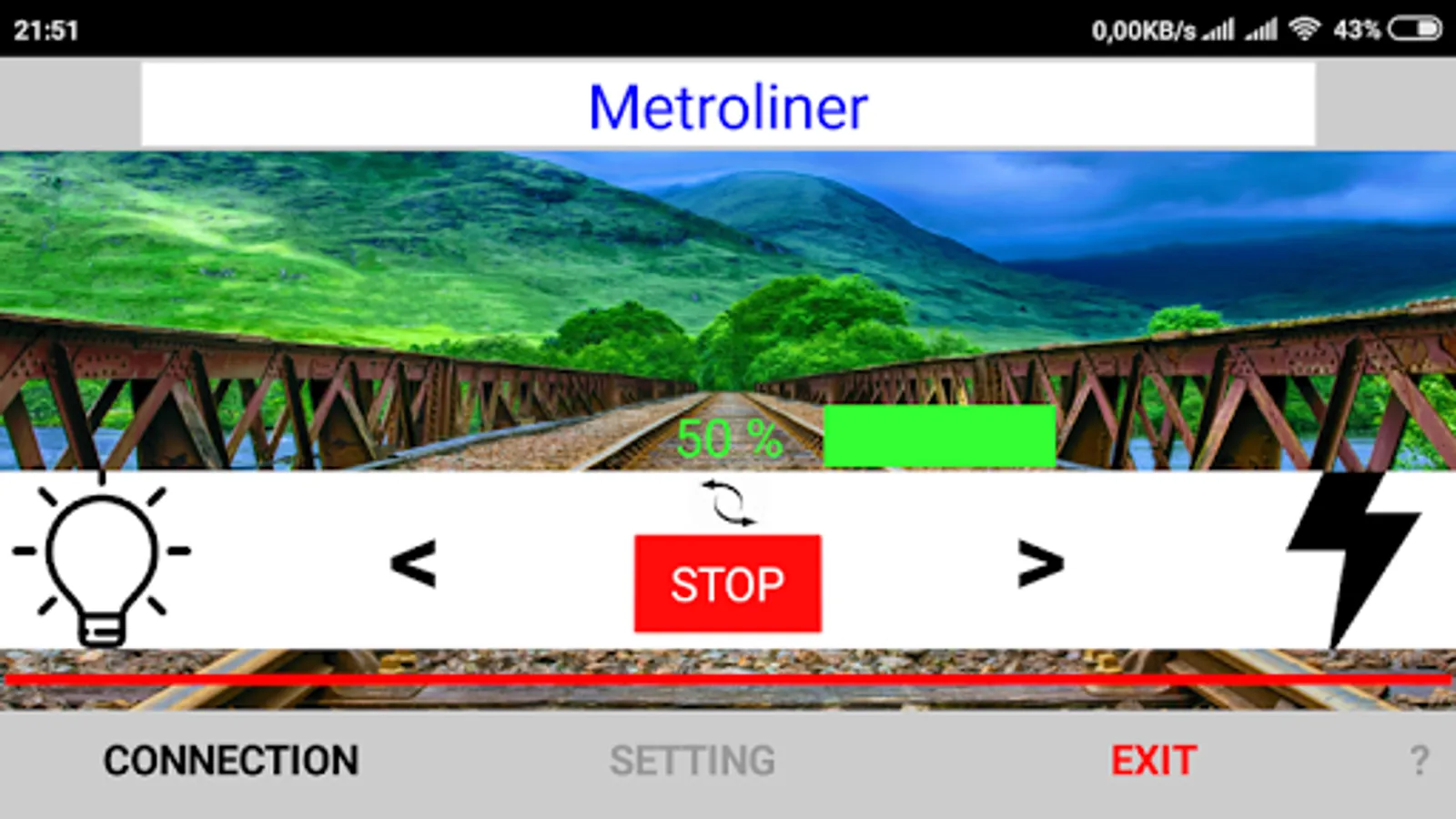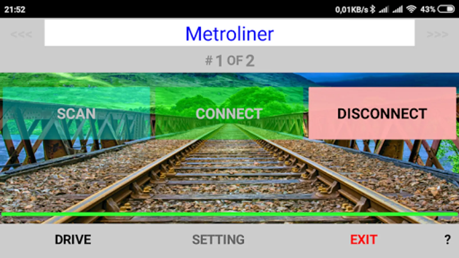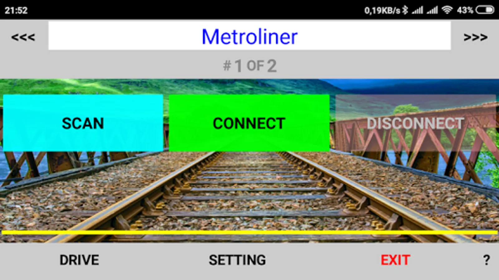 - in the "connection" menu tap on the SCAN button. When the connection bar becomes yellow, tap on the CONNECT button. When the connection is established, the connection bar becomes green and the train light is on.