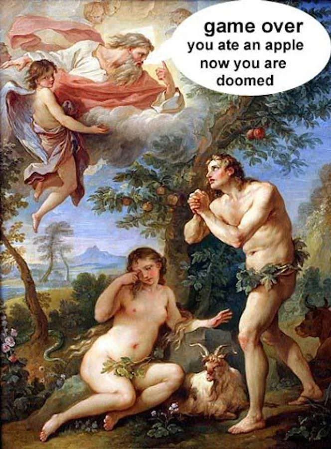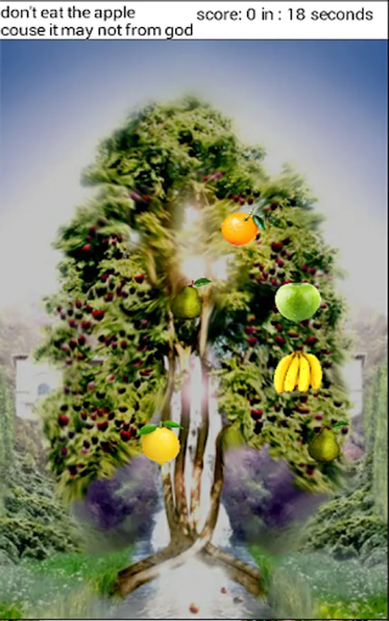 There is a holy tree with beatiful delicious fruits, you may eat all fruit from the tree but you may NOT eat the apple.