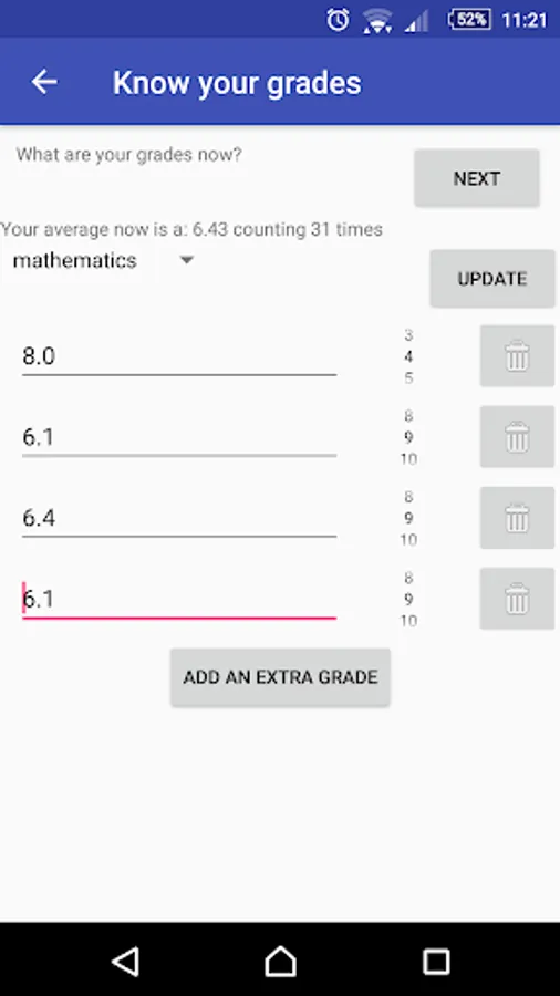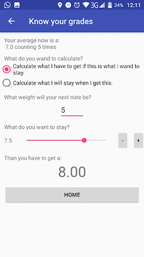 With this app, you can either calculate whatever note you have to get for a certain grade or even what you get to stay if you get certain grade