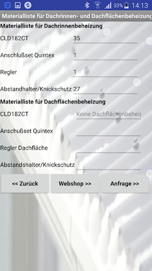 With this app, the necessary heating cable for the frost protection application of a pipe can be calculated. One can also make a design of a gutter heating (avoid icicles). After the design, a bill of materials is automatically generated, which can be sent as a request directly to Quintex or ordered in the shop.