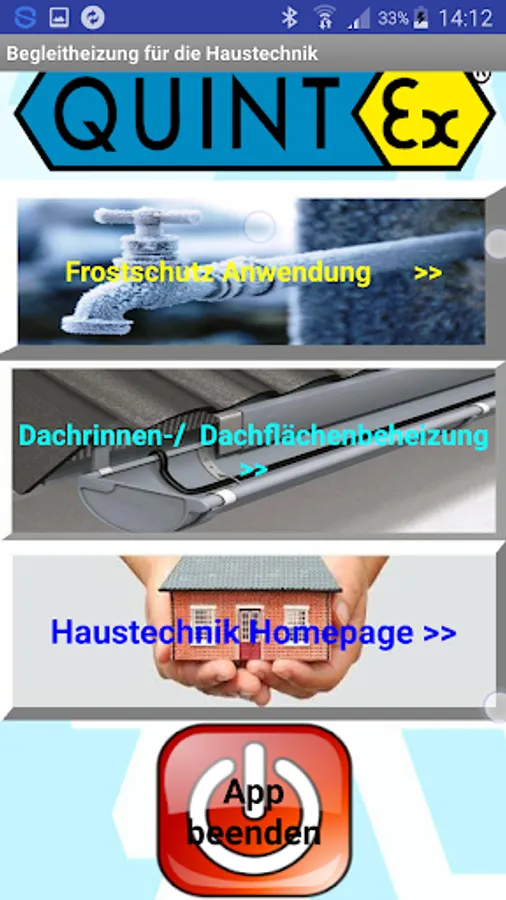 This app is a remake of the already well-known home automation app by Quintex. The heating tape types and their technical data have been adapted. Likewise, the handling was simplified. Since these changes were not transferable to the old app, this new app was made available.