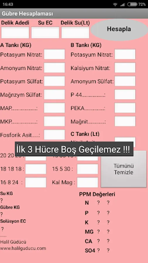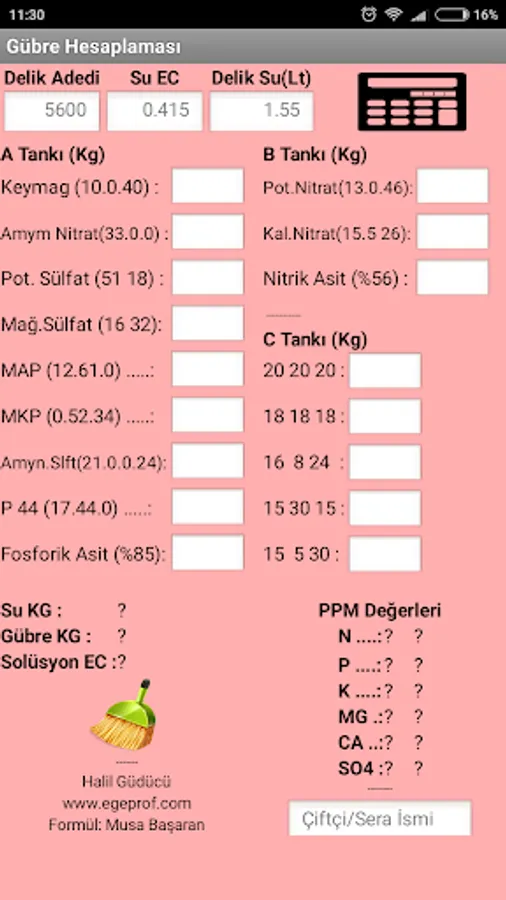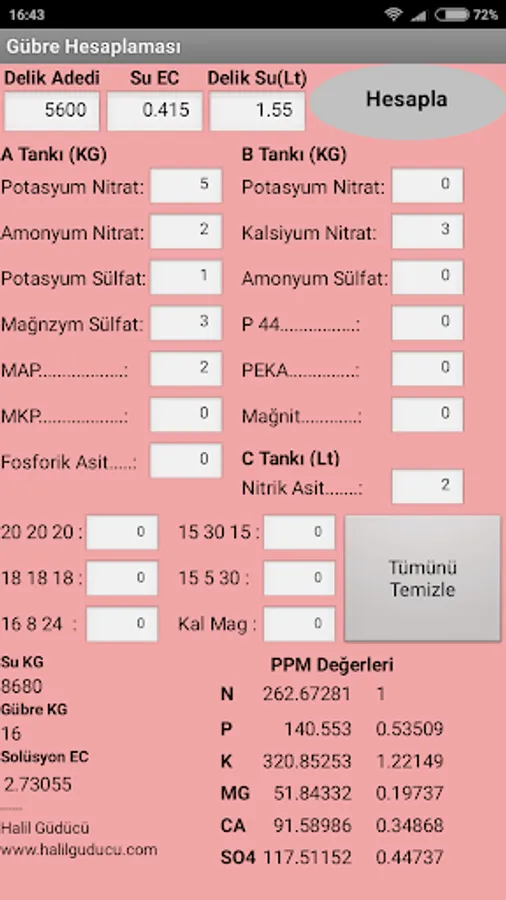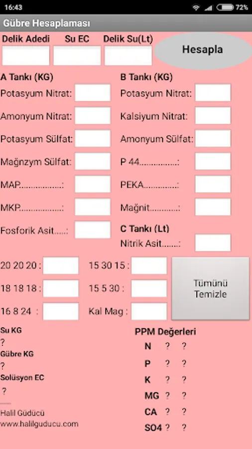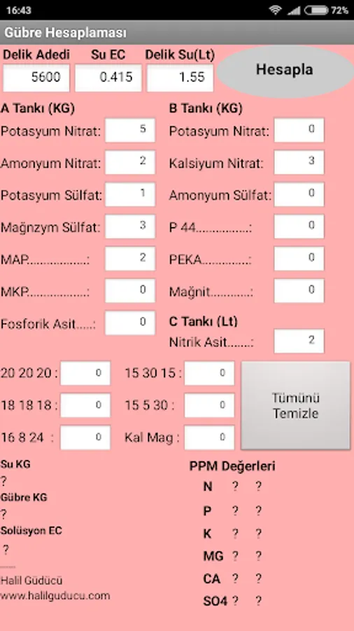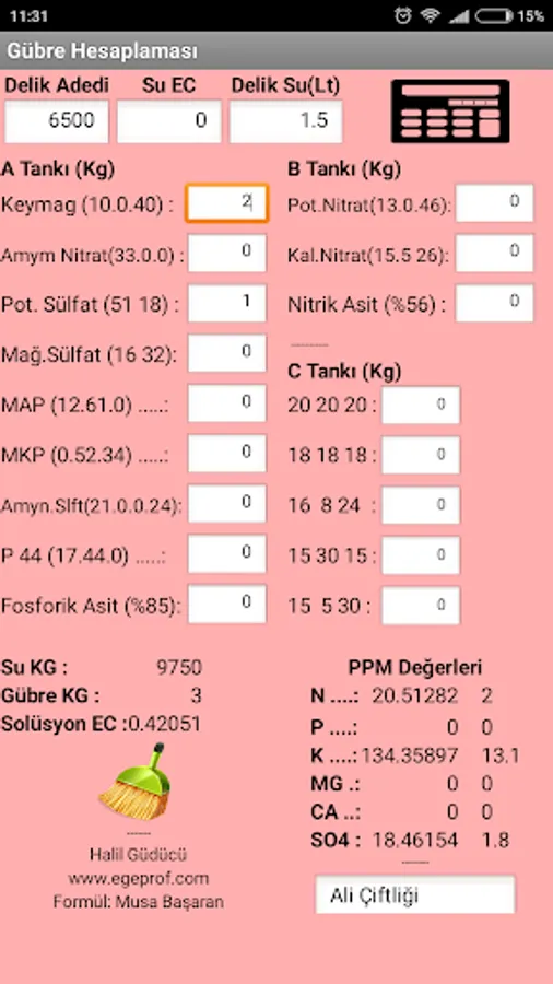 Drip irrigation system is an application where fertilizer calculation is used. Agricultural Engineer Musa Başaran's request was prepared. Field and Greenhouse farmers are available free of charge.