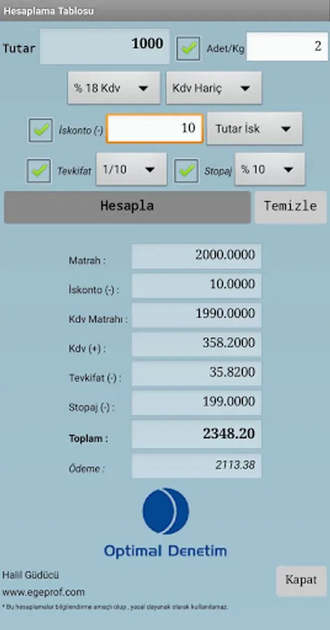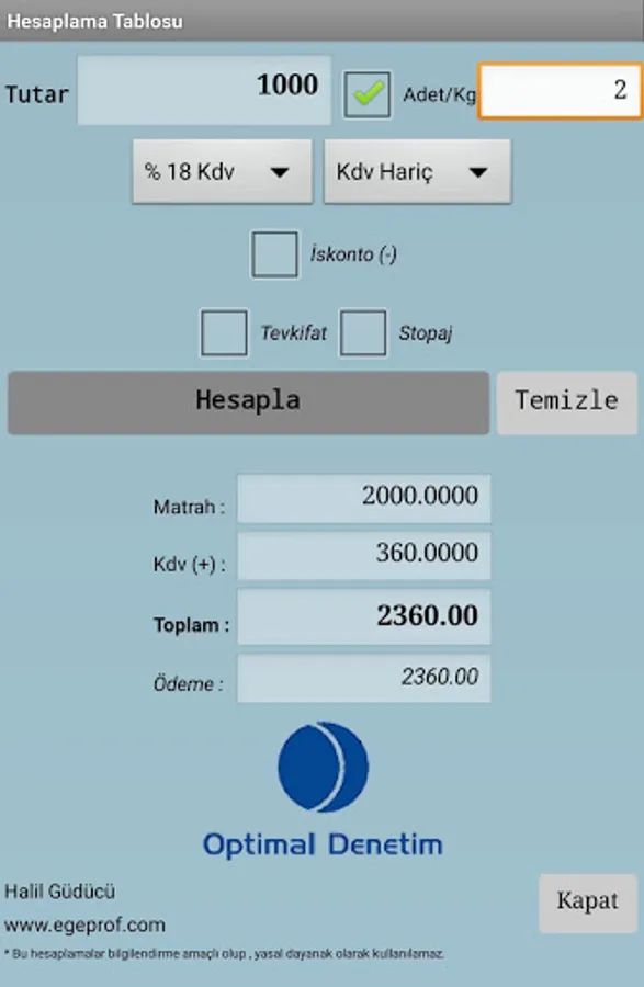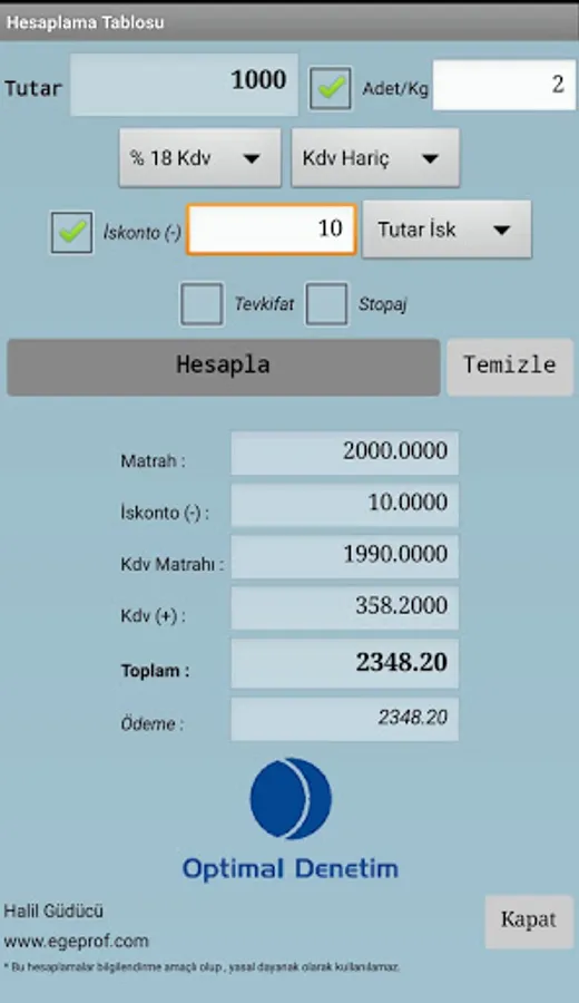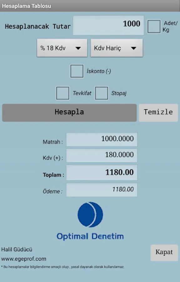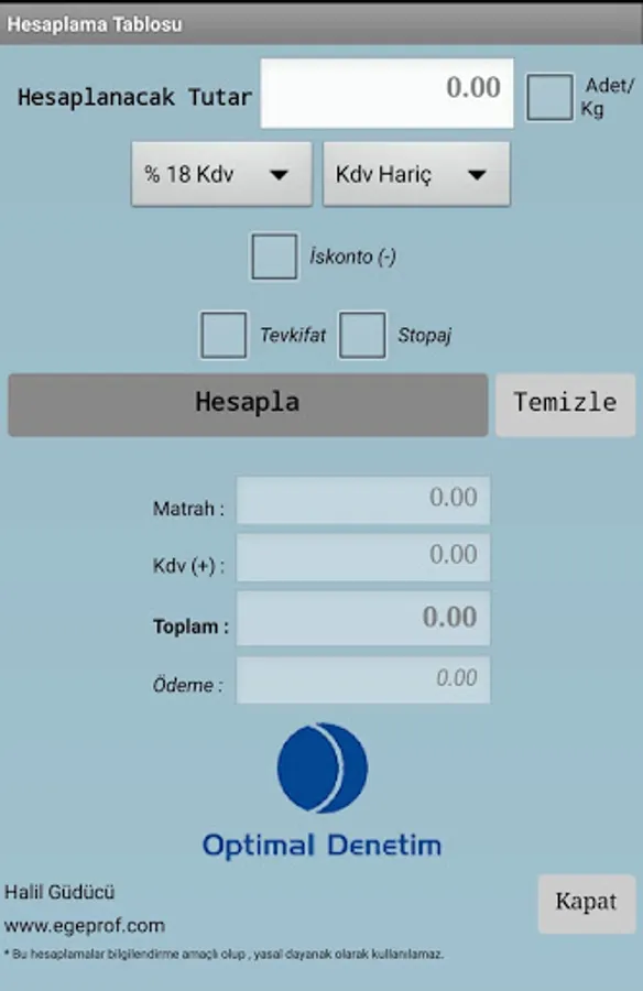 It is a practical VAT, withholding, withholding calculation application that can be used in various sectors, especially during invoicing or cost calculation. It will continue to be improved with updates.