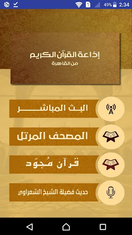 Note: This application is unofficial unofficial but came to solve the problem of listening to the Holy Quran radio station from Cairo on the Internet through mobile as the official site of the radio does not allow listening only through the computer and not from the mobile.