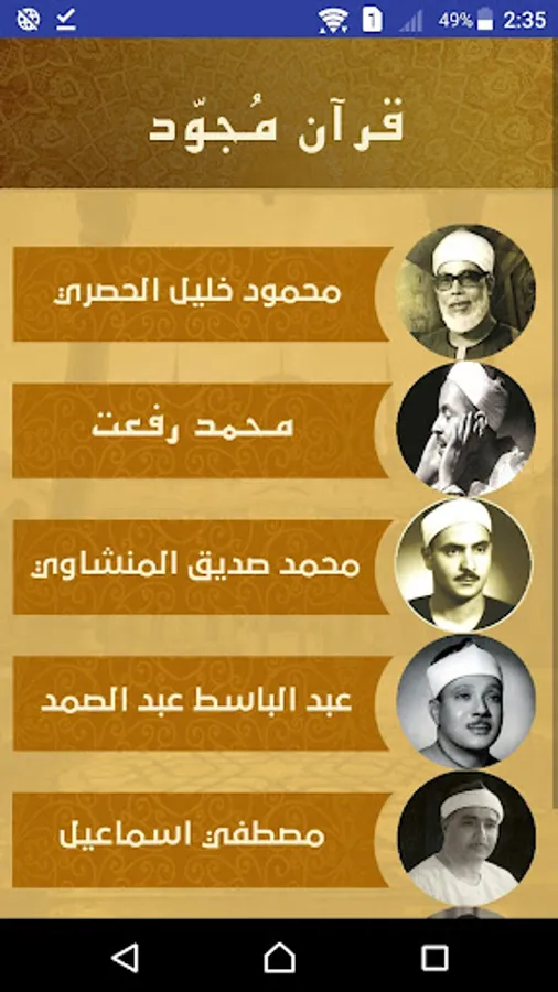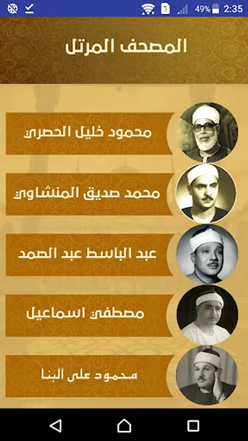 Mahmoud Khalil El Hosary - Mohamed Seddik El Menshawy - Abdel Baset Abdel Samad - Mostafa Ismail - Mahmoud Ali El Banna.