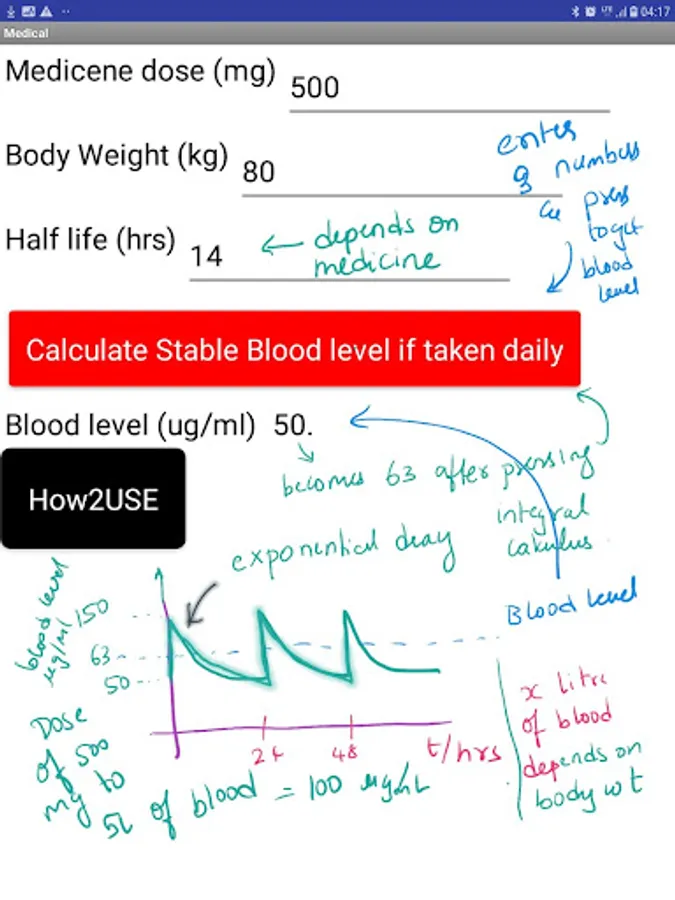 1. Noninvasive medicine blood level test based on weight and half-life. Daily drinking, whats the Bac ?
