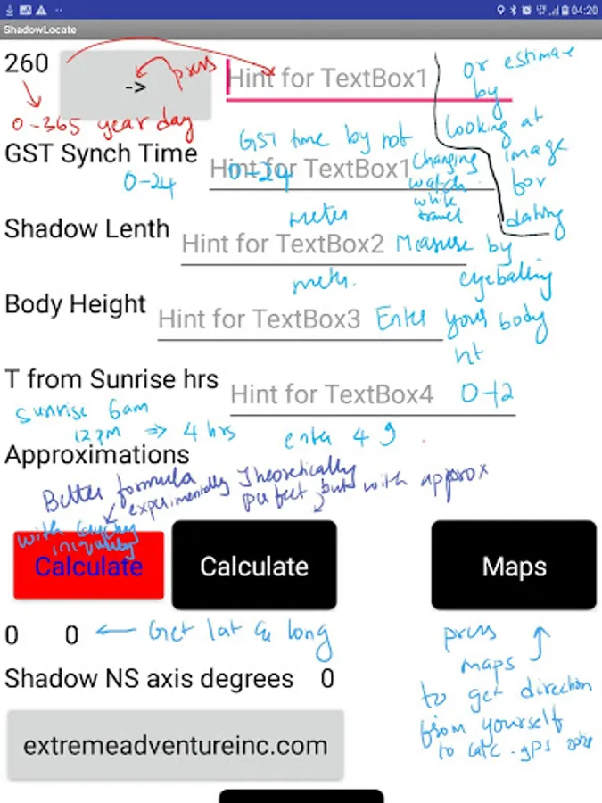 The red and blue for shadow locate has an approximation to sqrt a2 + b2 < a+b maybe giving a breather with better results, considering compass angle if there too. Will update HHapps and leave the rigorous theory proved app with approximations to HNav, 15