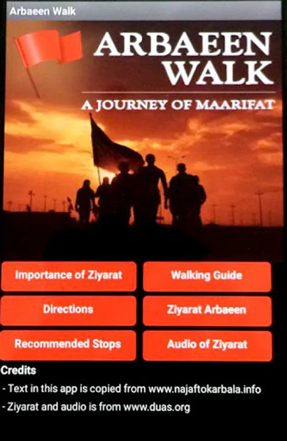 Main purpose behind 'Arbaeen Walk' App is to give user basic information offline, that will help people during their walk to Karbala.