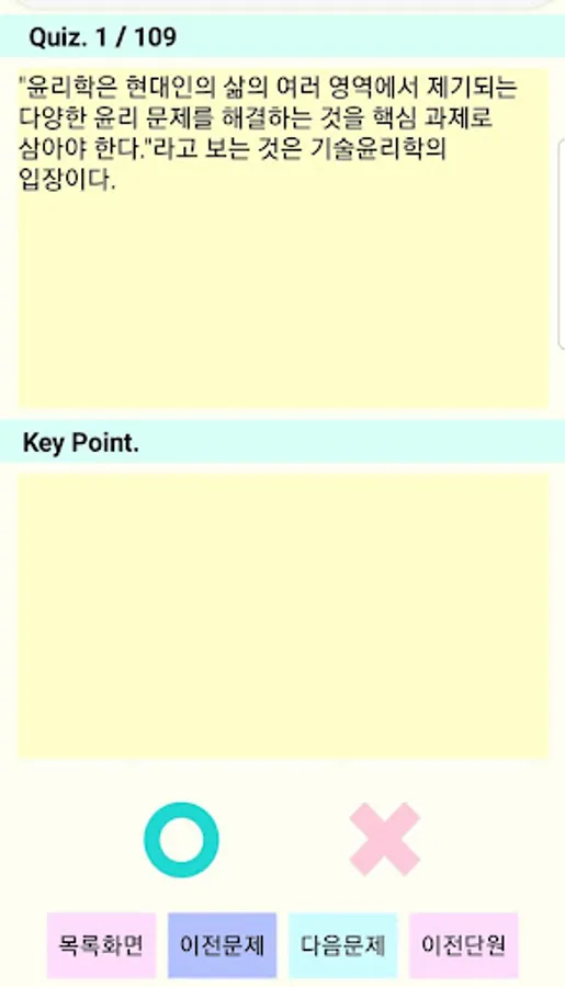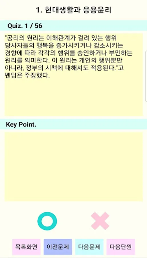 1. The current Daechi-dong instructor O.X quiz app for life and ethics made for improving students' grades.