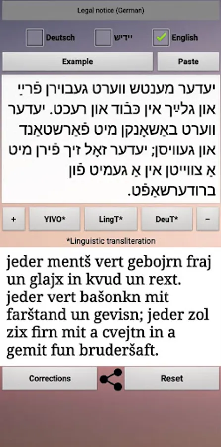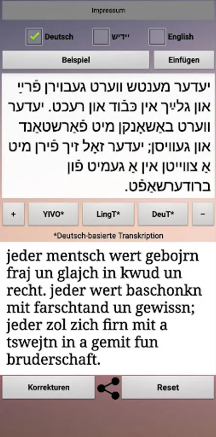 This app allows to transcribe Yiddish texts with Hebrew script into three different transcription systems: