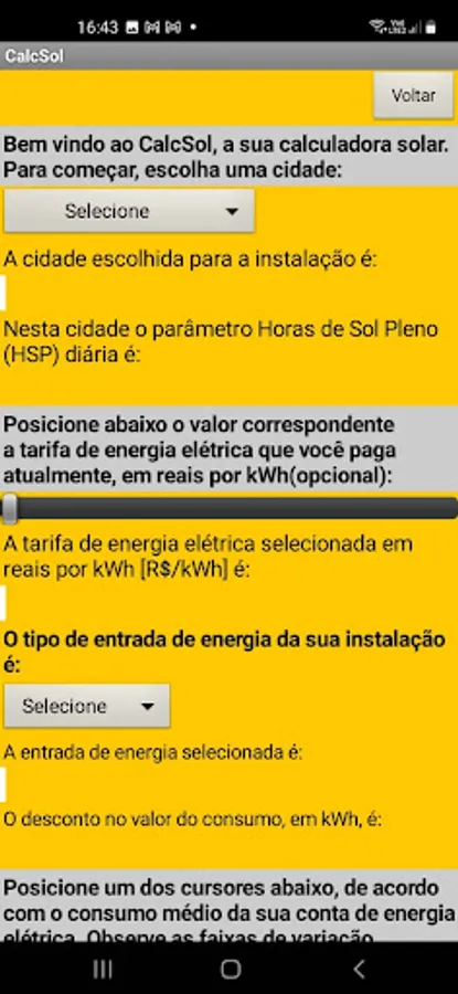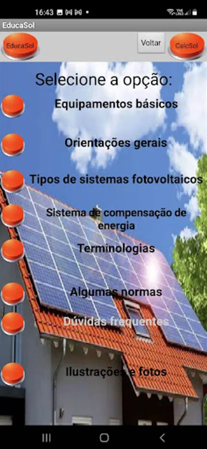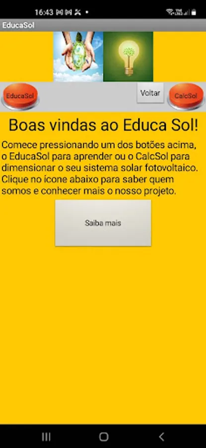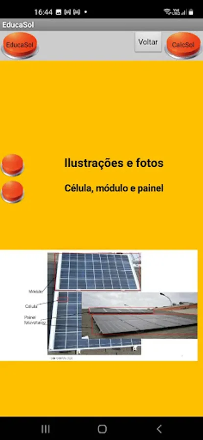 This app has an educational purpose, sharing knowledge that will help people understand more about photovoltaic solar energy, being able to decide to invest in this technology and enjoy its benefits. It is the result of a Social Extension project at Faculdade Estácio in Curitiba. The team: the advisor and author of the app: Professor Henrique Marin v d B Campos, eng. Msc.; the students Thiago A. Assis and Duílio C. Mocelin and the prof. Dr. Osório do Nascimento Neto.