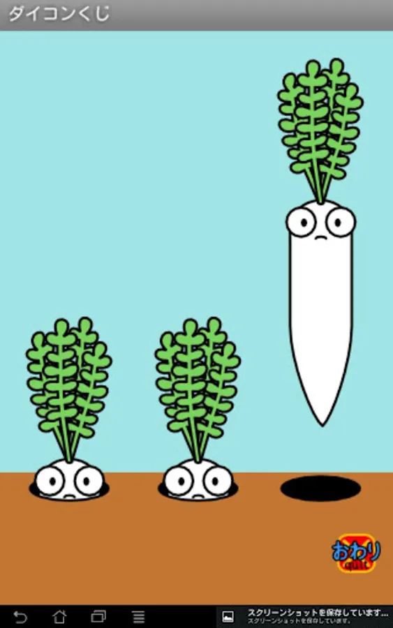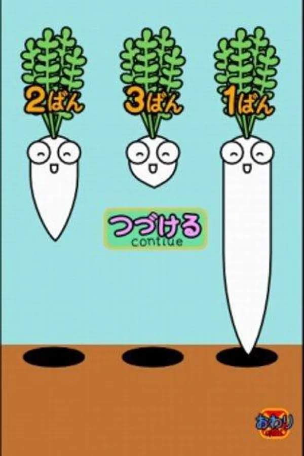 3本のダイコンから1本を選び、上ドラッグして畑から引き抜いてください。