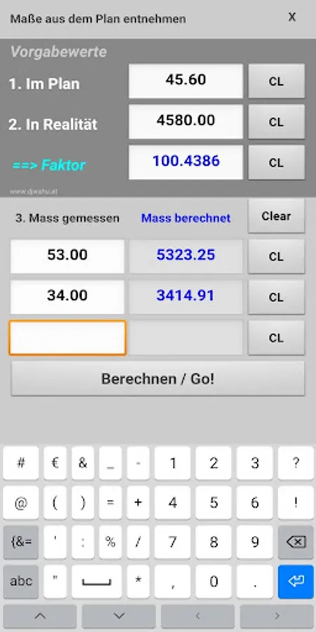 Planmaße berechnen Screenshots