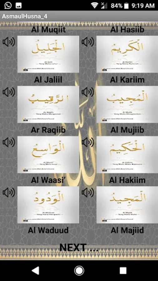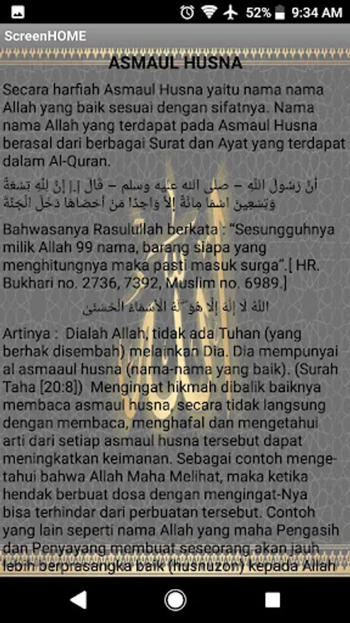 This software is a free, full free without money, software / application about the Name of Allah SWT, the beautiful name of the God of the World, 99 names of Allah SWT.