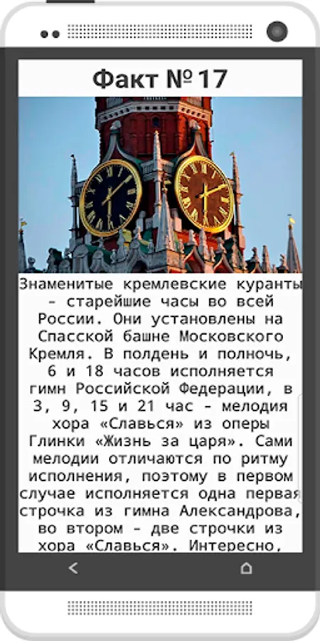 In this application, you will learn interesting facts and places in the city of Moscow. It will be useful for travelers who are planning to visit the city, and local residents. It will allow you to learn new and interesting facts that not everyone knows.