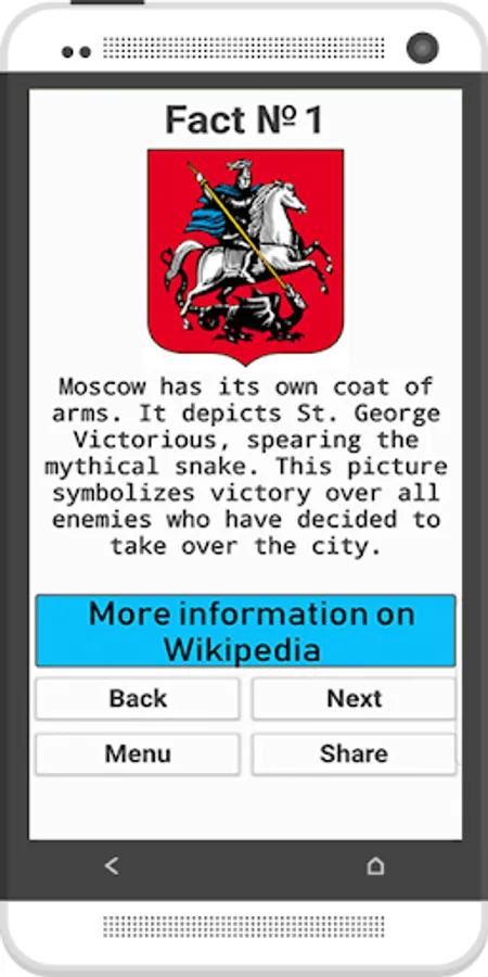 In this application you will learn about interesting facts and places related to the city Moscow of the Russian Federation.