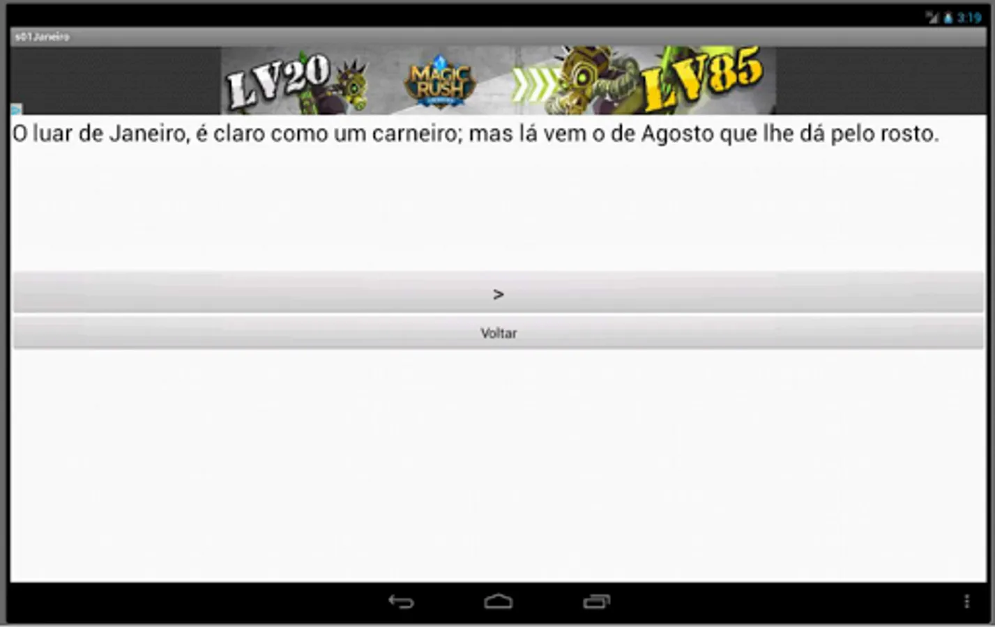 Here you can find dozens of proverbs and sayings popular Portuguese applied to 12 months. Some of them have centuries of existence and adapt to many situations of everyday life. Learn about the proverbs and sayings popular Portuguese through this simple application.