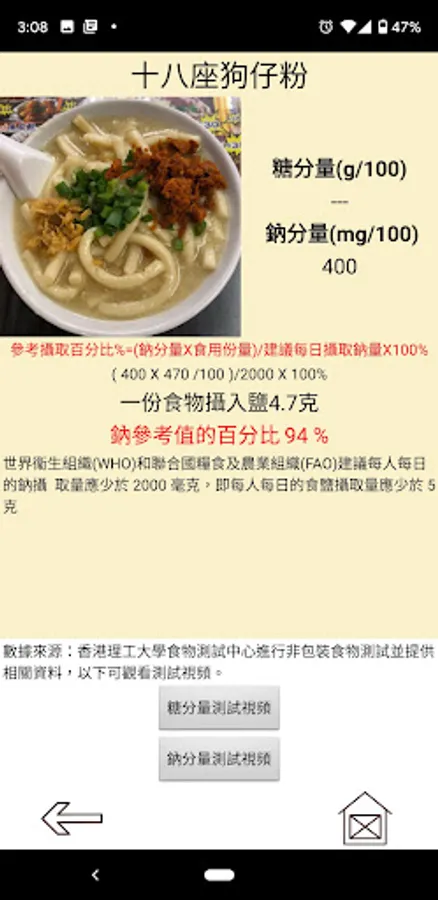 Non-packaged food-users can check the sugar/sodium content of street snacks in Hong Kong.