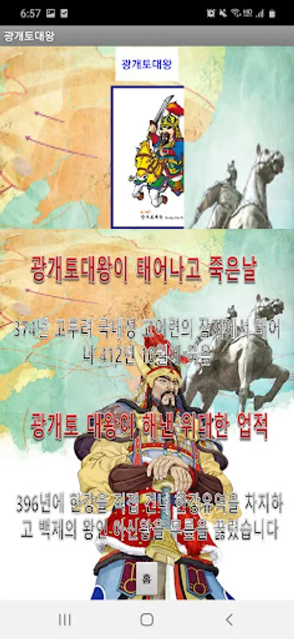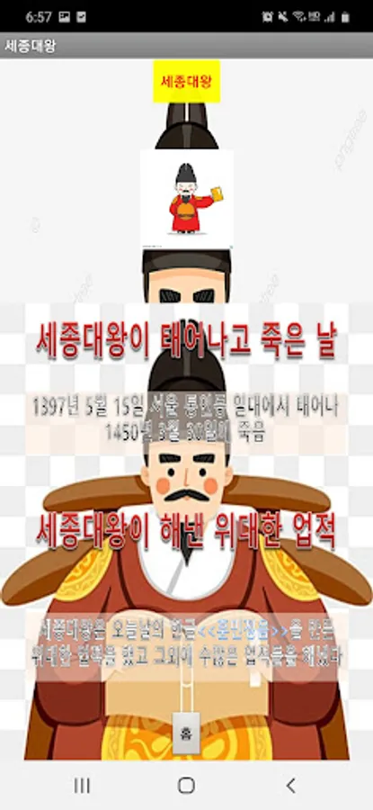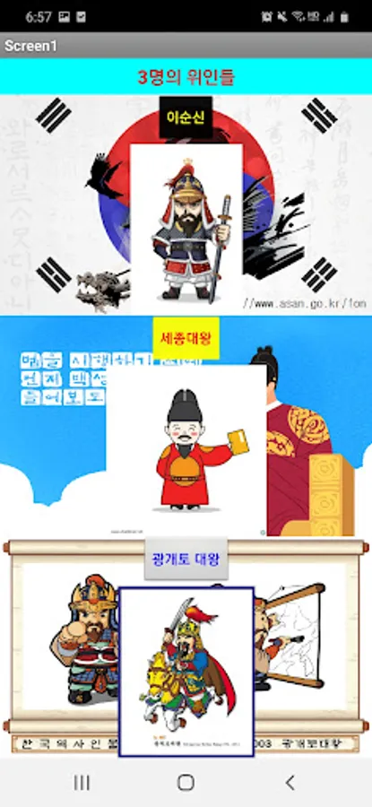 The work and achievements of Admiral Yi Sun-sin, King Sejong the Great, and King Gwanggaeto, who fought for our country, and