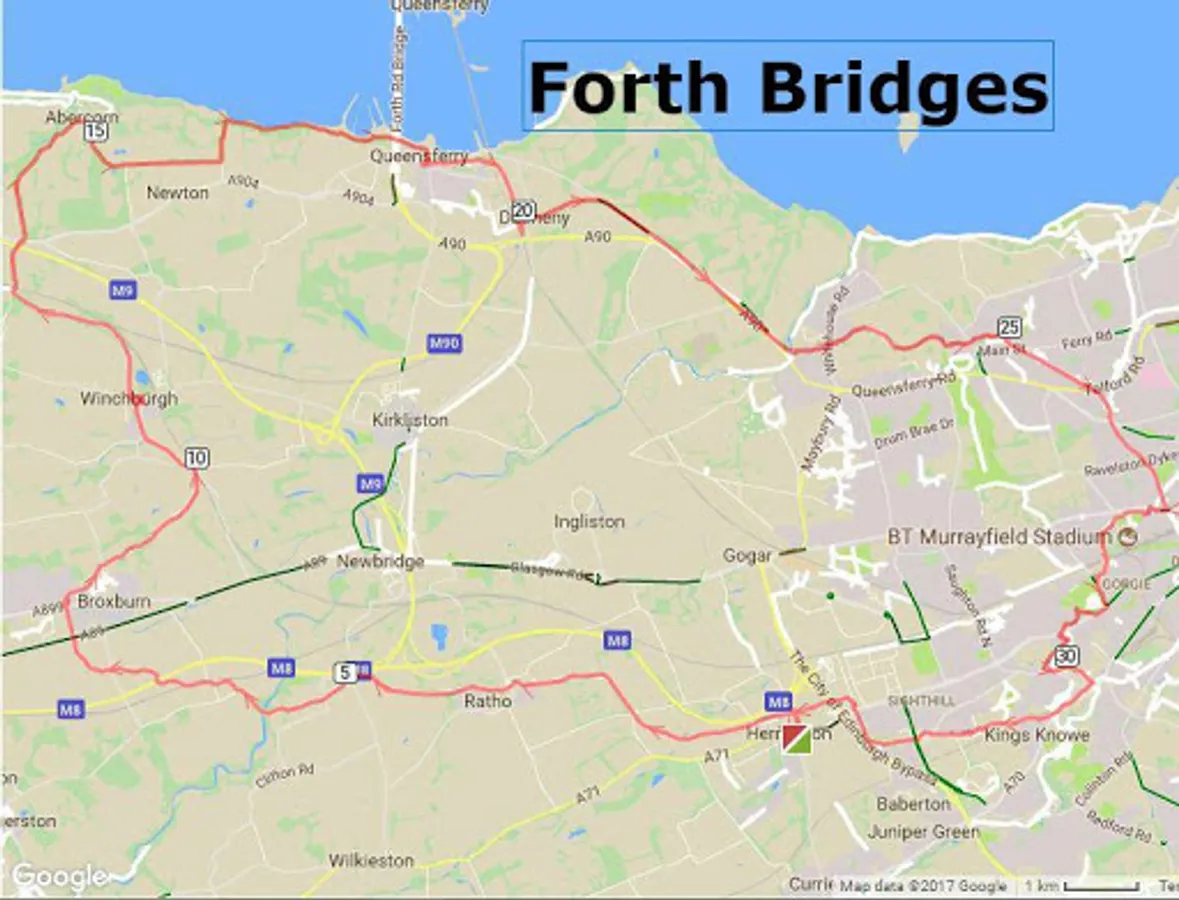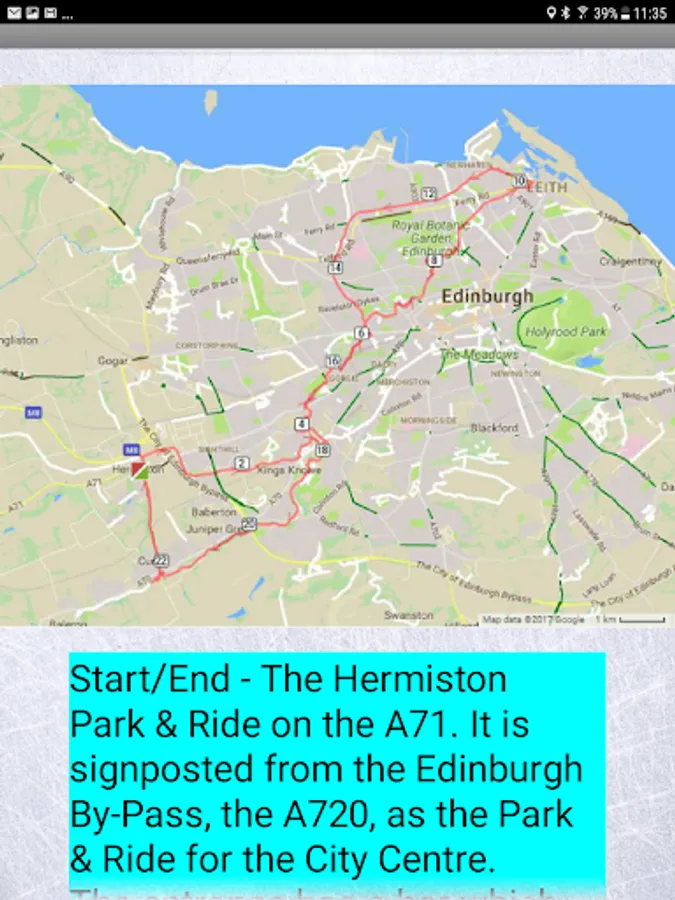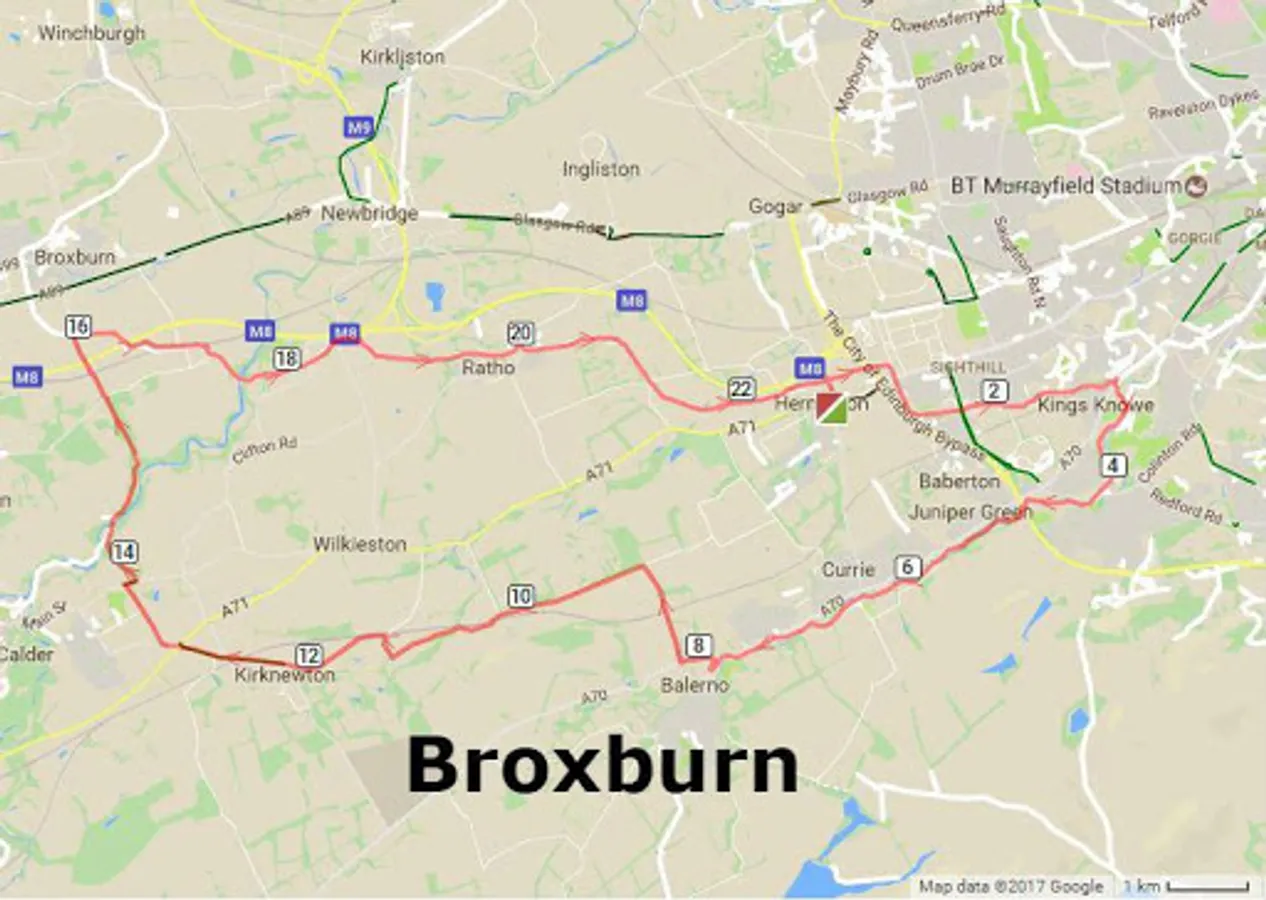 All of the routes are circular and start and end at the Hermiston Park & Ride on the A71. It is signposted from the Edinburgh By-Pass, the A720, as the Park & Ride for the City Centre. The entrance has a bar which restricts the maximum vehicle height to 1.9m/6'3".