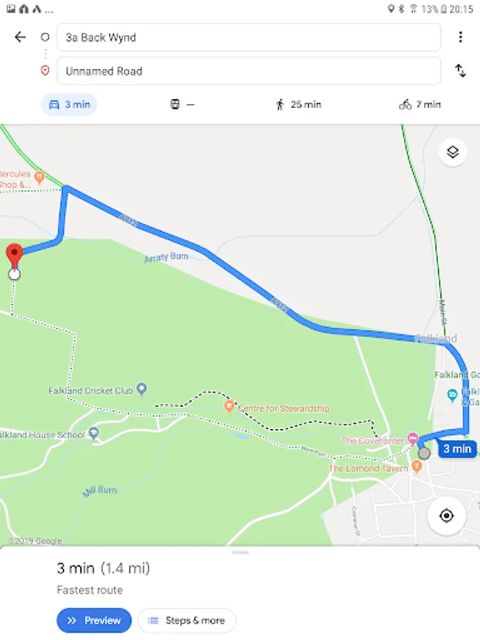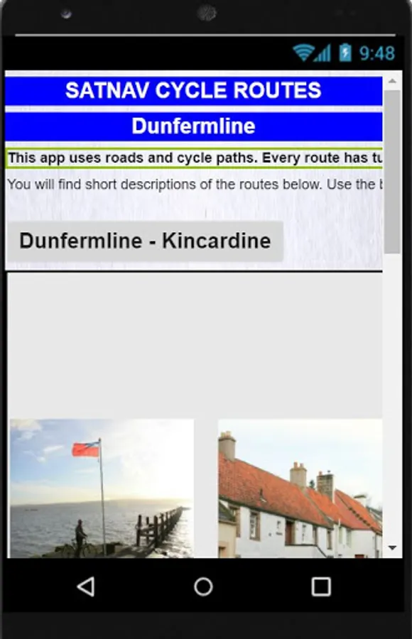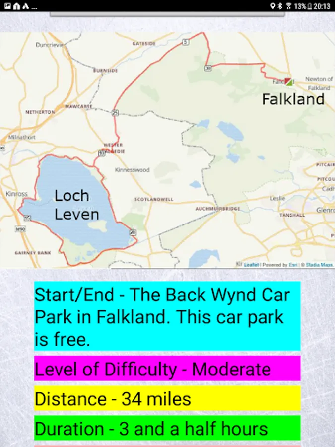 Satnav Cycle Route from Falkland to Loch Leven using cycle paths and roads. The route has turn-by-turn navigation with voice instruction. Enjoy the benefits of cycling a whole route by following Sat Nav instructions without having to buy an expensive Sat Nav. Just download the app to your device.