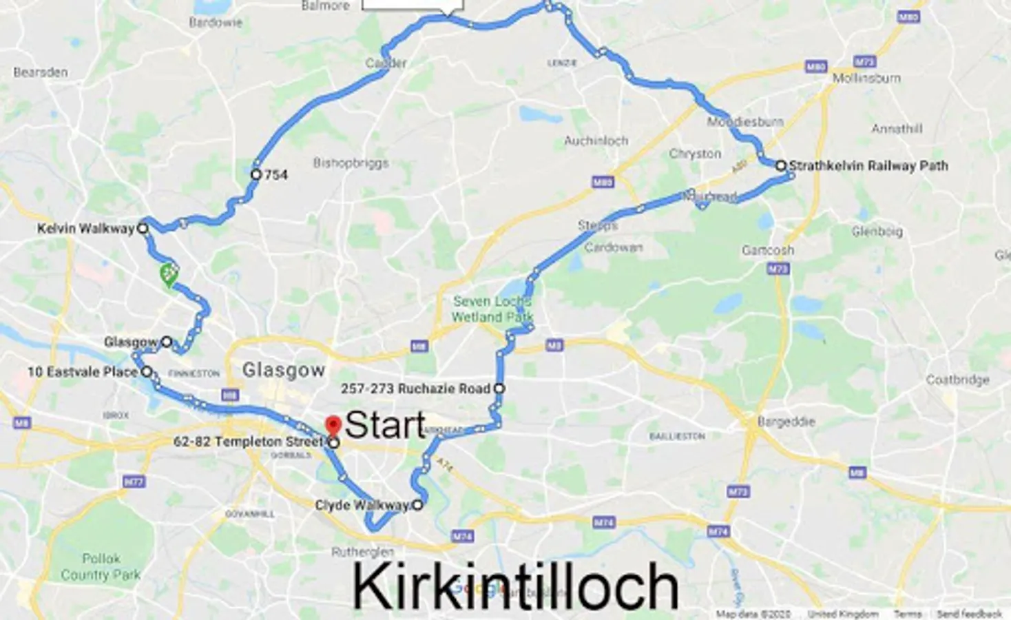All of the routes are circular and start and end in Templeton Street, Glasgow. The street has lots of free car parking spaces.