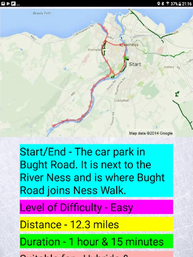 All of the routes are circular and start and end in the car park in Bught Road. It is next to the River Ness and is where Bught Road joins Ness Walk.