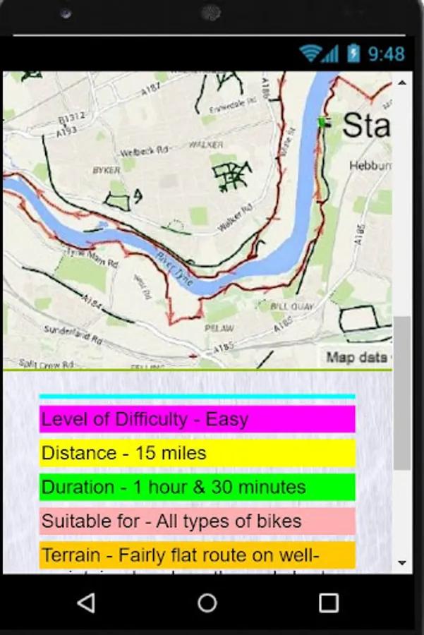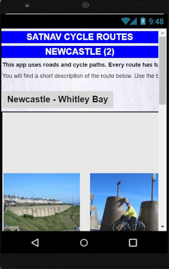 Satnav Cycle Routes around Newcastle using cycle paths and roads. Every route has turn-by-turn navigation with voice instruction. Enjoy the benefits of cycling a whole route by following Sat Nav instructions without having to buy an expensive Sat Nav. Just download the app to your device.