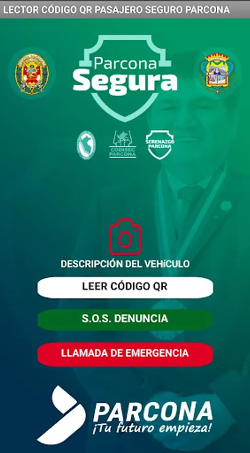 This application was developed at the initiative of the Mayor of the District of Parcona, Mr. José Choque Gutiérrez, Commander Marco Antonio Solano Padilla - CIA Parcona Commissioner and in Coordination with the members of CODISEC Parcona, in order to provide security to the passengers of the District of Parcona, in its usual displacement inside or outside the district.