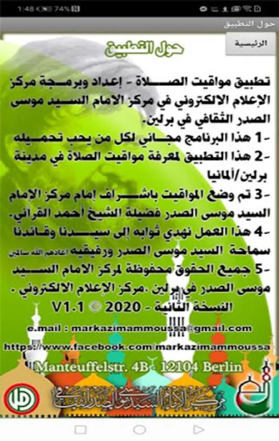 Prayer Times Program - Preparation and programming of the electronic media committee at the Imam Sayyed Musa Al-Sadr Cultural Center in Berlin