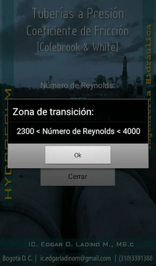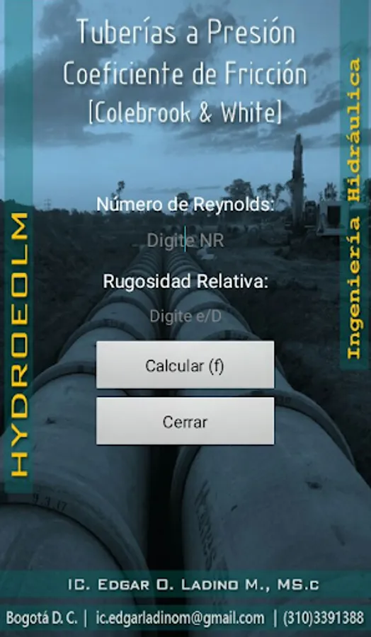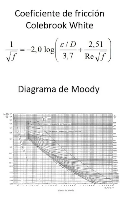 Calculation of the coefficient of friction proposed by Colebrook & White from the relative roughness and the Reynolds number.